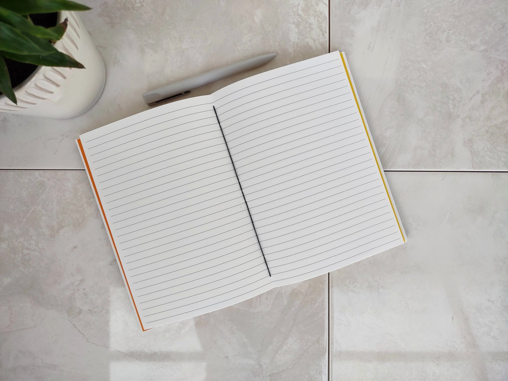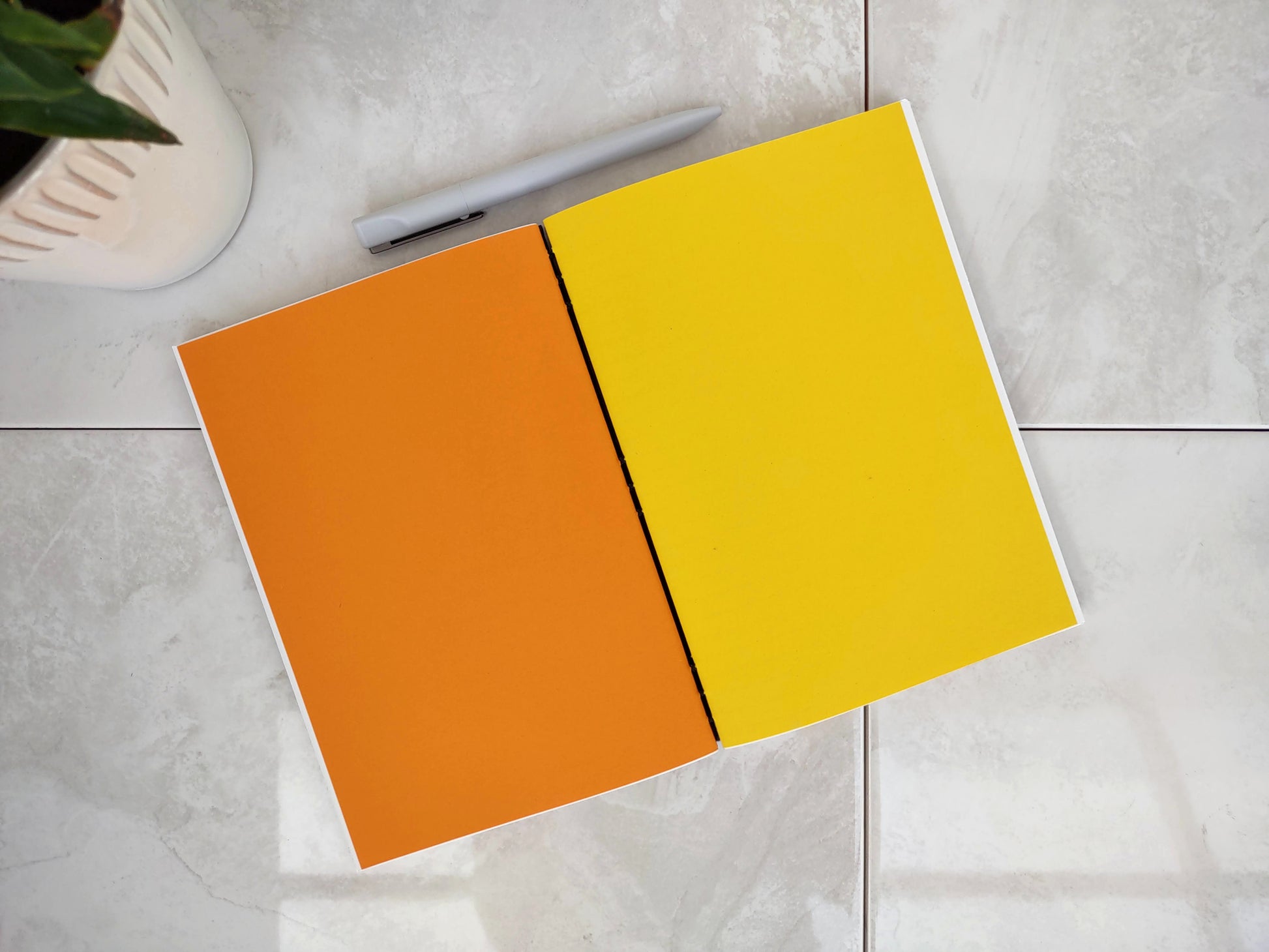 The pages can be made in your choice of blank, lined, .5cm dot grid, or graph on acid-free sketchbook paper. The pages are bound together using a Coptic stitch. This binding method allows the pages to open and lay perfectly flat for ease of use. The stitching is exposed along the spine.