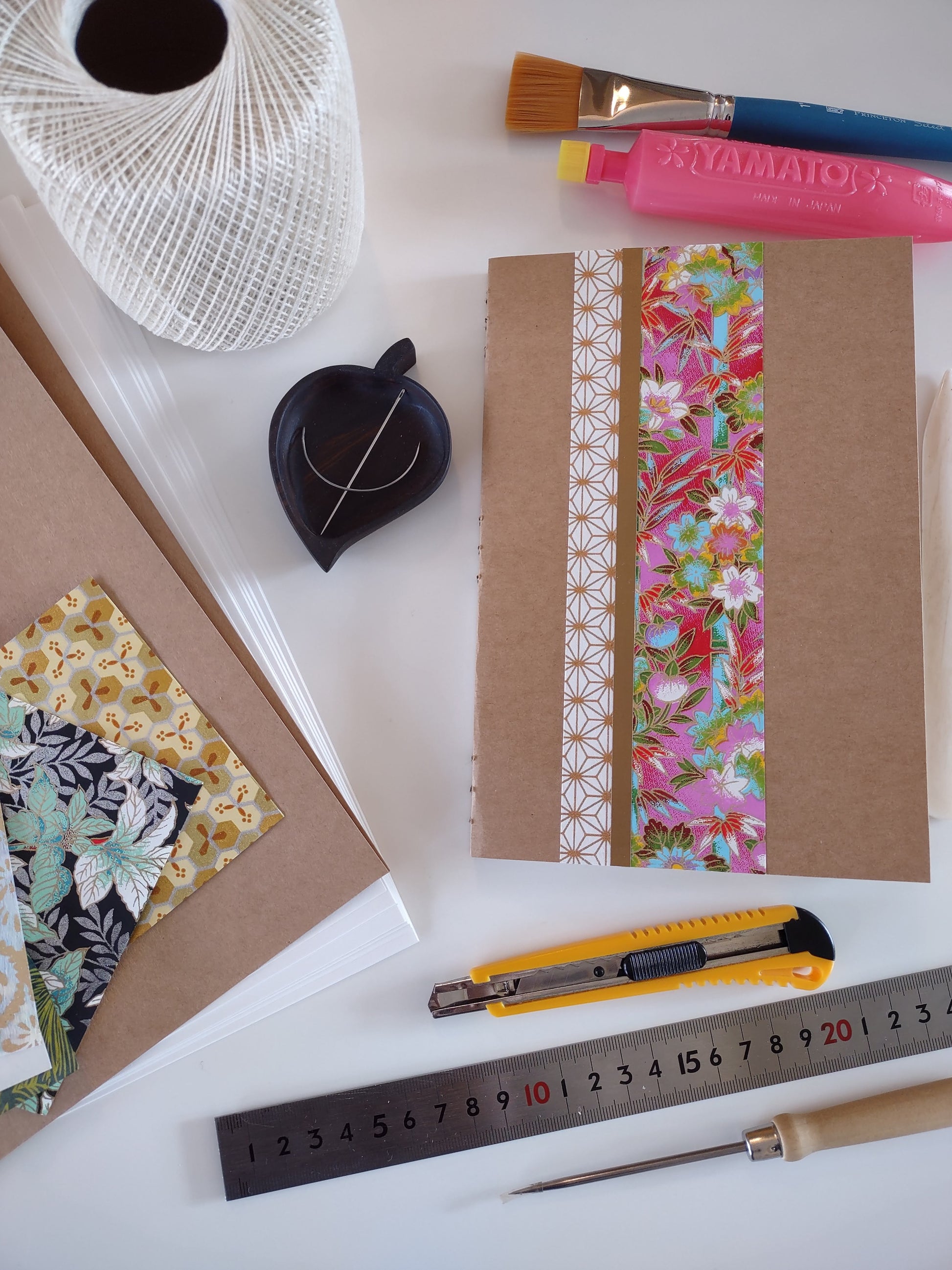 All tools and materials to create your journal will be provided. You'll be able to choose from blank, lined, or dot grid pages to fill your journal. At the end of the class you'll be able to use artisan papers from our collection to collage the cover of your journal before taking it home with you.