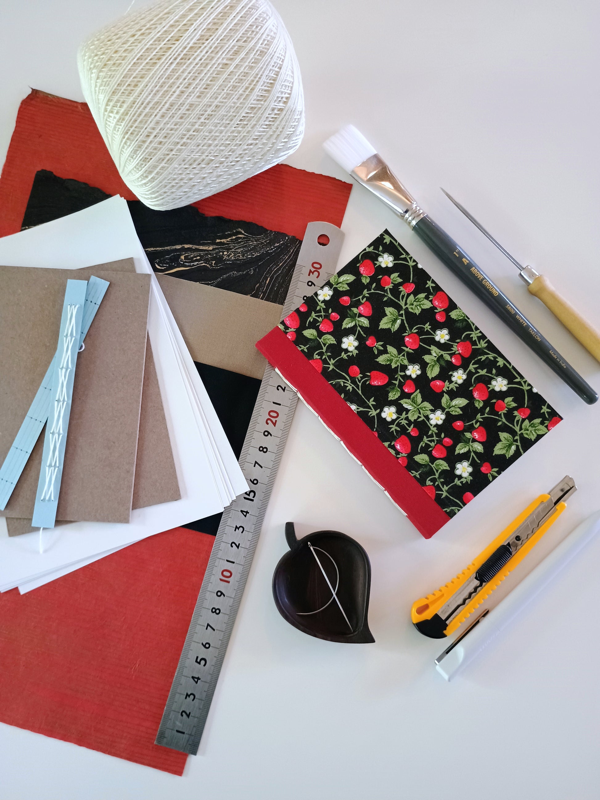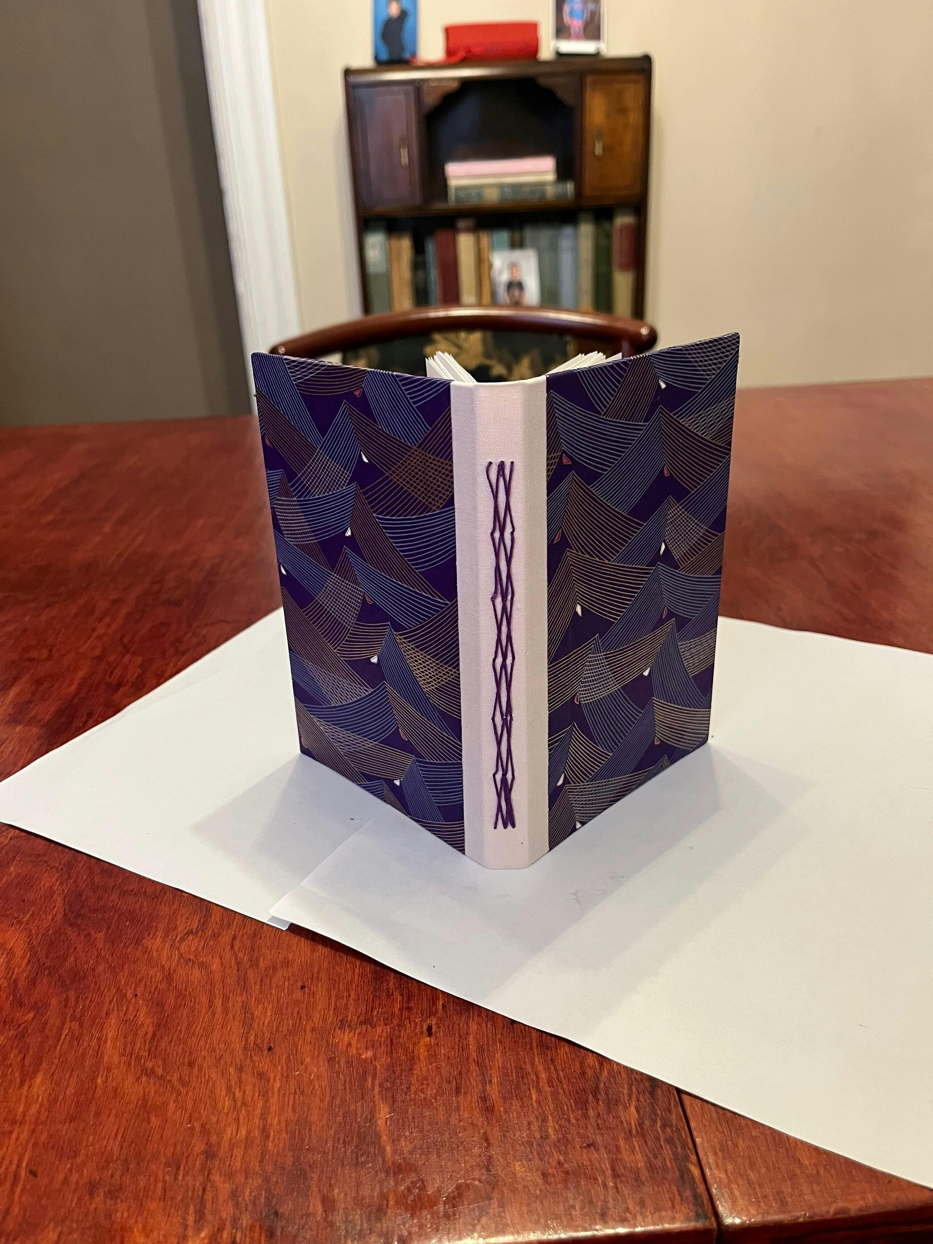 All tools and materials to create your journal will be provided. When signing up, choose from blank, lined, or dot grid pages to fill your journal. You can let me know of your color preferences for your cover, and I will bring a selection of papers from my current supply in that color for you to choose from.